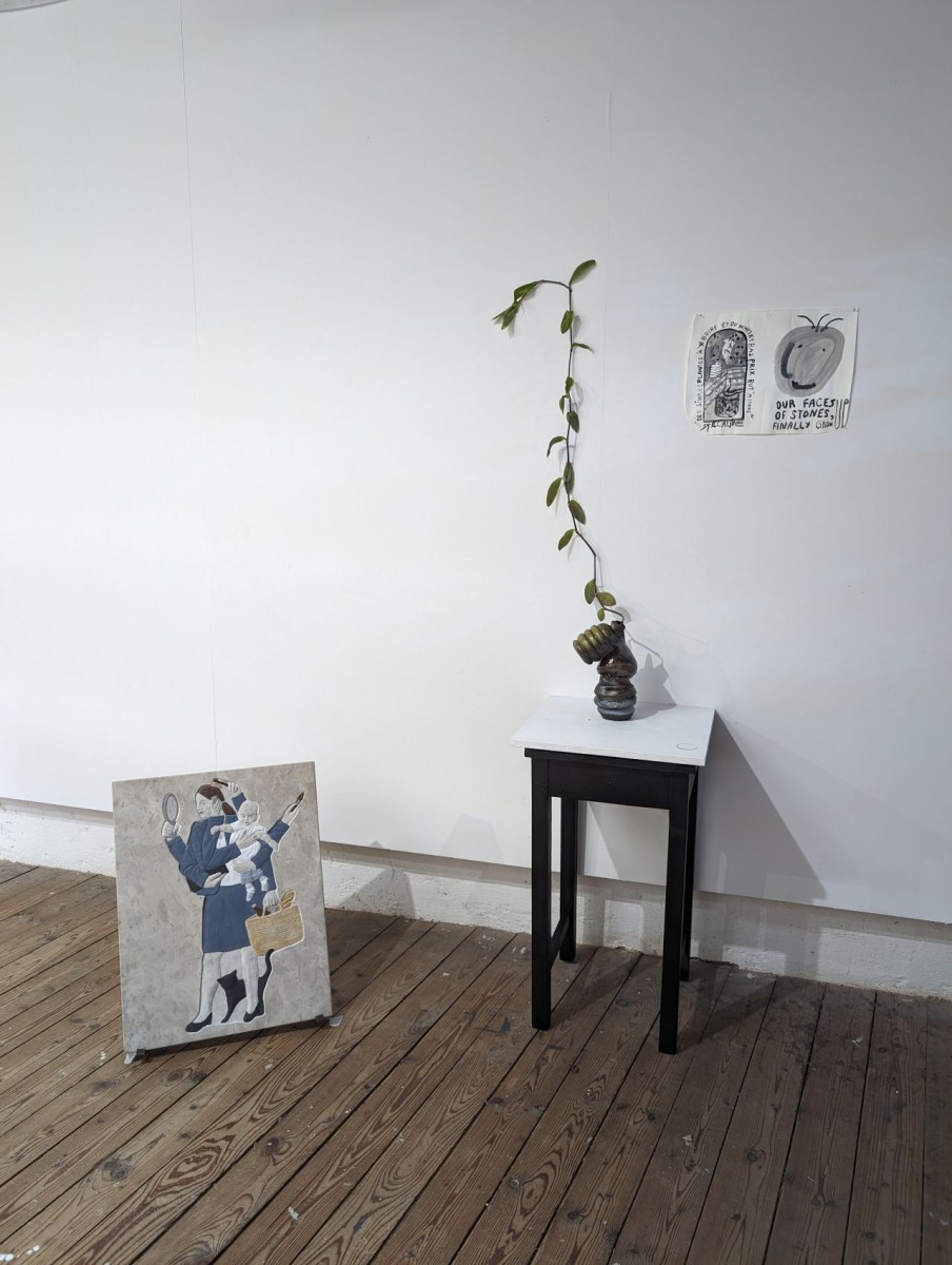 Nous avons été dans le faire ensemble depuis le début de notre partenariat. Comment se réunir à deux artistes étrangères, sculptrices, inconnues l’une pour l’autre? La rencontre plastique ne se commande pas, il a fallu prendre le temps de se connaître et d’assumer la tentative, le saut dans le vide avec le temps imparti et nos médiums qui vont a l’encontre de la vitesse. Nous cherchions des méthodes de tisser une approche vis à vis de nos temporalités et vies respectives. On a profité de la distance pour s’envoyer des photos de plantes, de nos modes de vie, et finalement se retrouver à contempler les choses ensemble tout en s’envoyant des attentions presque des offrandes rappelant aux correspondances d’époque. L’acte de flâner pour mieux se rencontrer est ainsi sublimé par nos gestes qui en découlent. C’est aussi un pied de nez à cette l’expression française «enfiler des perles» souvent assez péjorative. Nous cherchons ici à expérimenter, à revendiquer des gestes rudimentaires fondamentaux pour trouver une zone artistique commune laborantine et ouverte loin des barrières de langues, de cultures, de pays.