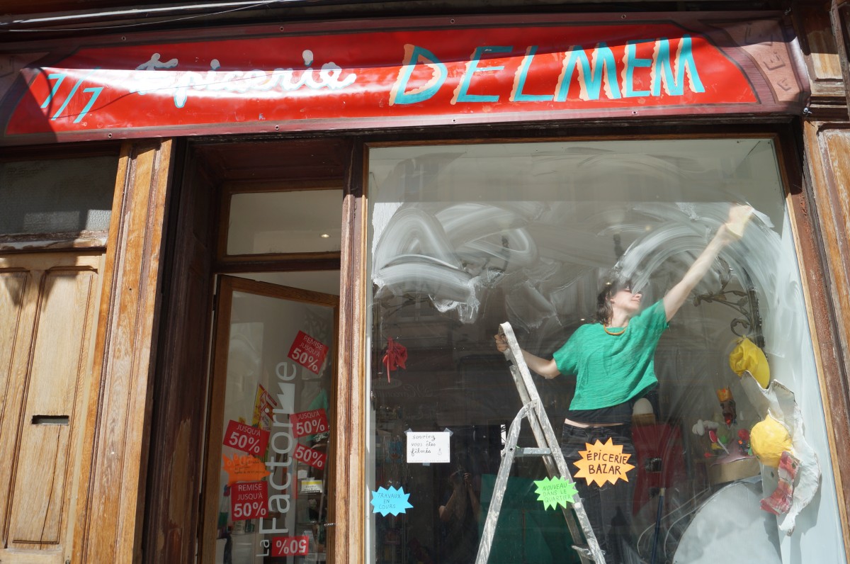 Résidence de deux mois et exposition dans la galerie-vitrine de la Factorine à Nancy. Premier évènement sous le nom du Duo collectif Femelles du Faisant, création d’une fausse épicerie avec les matériaux récuperés dans les rues et avec les commerçants de Nancy.