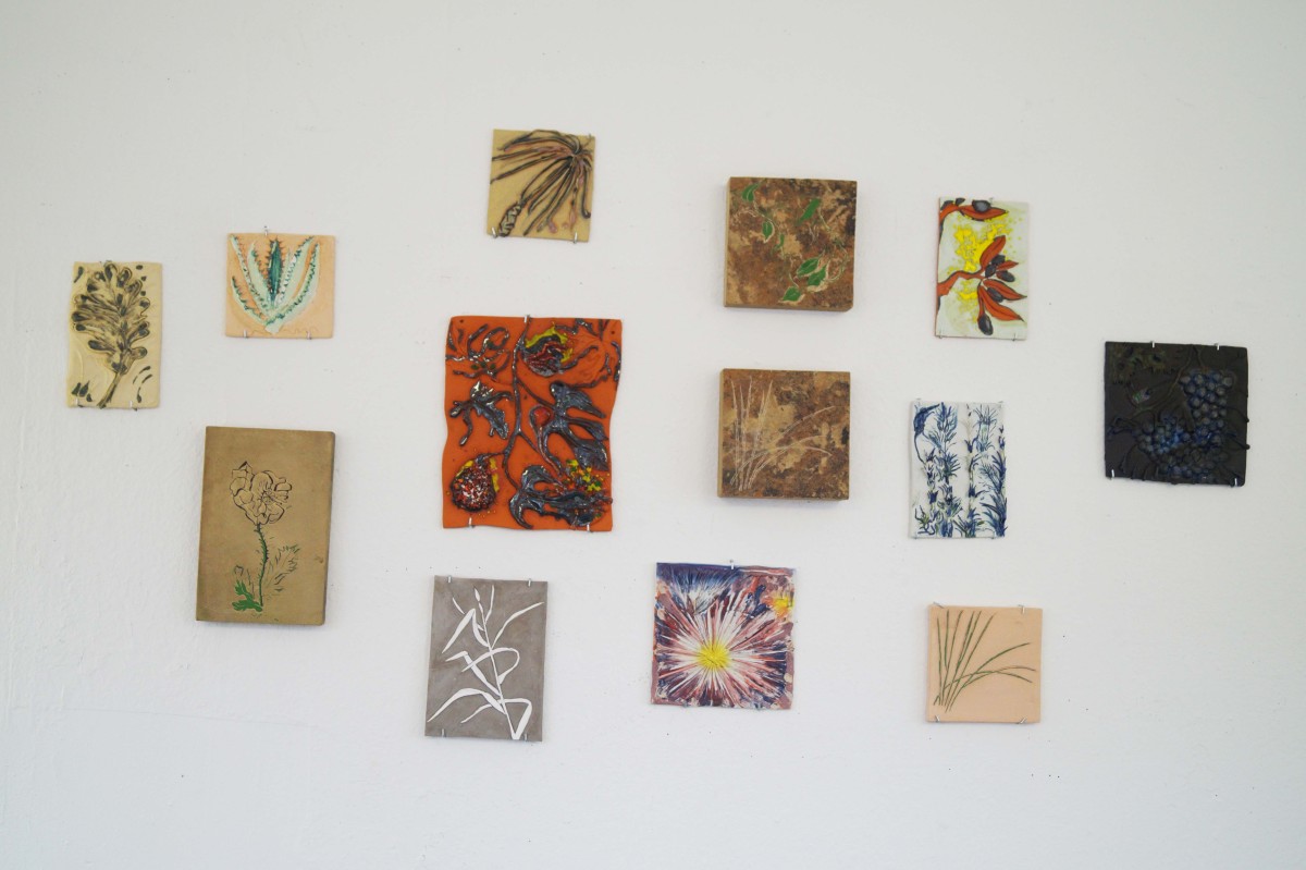 Et vues détail pièces sève de cacté de famille / Strange fig mother! / Aloe vera!!! / olive lemon juice / Passion flower - parmis les plantes choisies pour leurs vertus medecinales / symboles / taille de pierre misère / Coquelicot, portrait mains en train de tailler la pierre.
